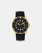 Be the first to review “Men’s Automatic Watch in Yellow Gold Tone Stainless Steel with Black Dial and Silicone Strap”